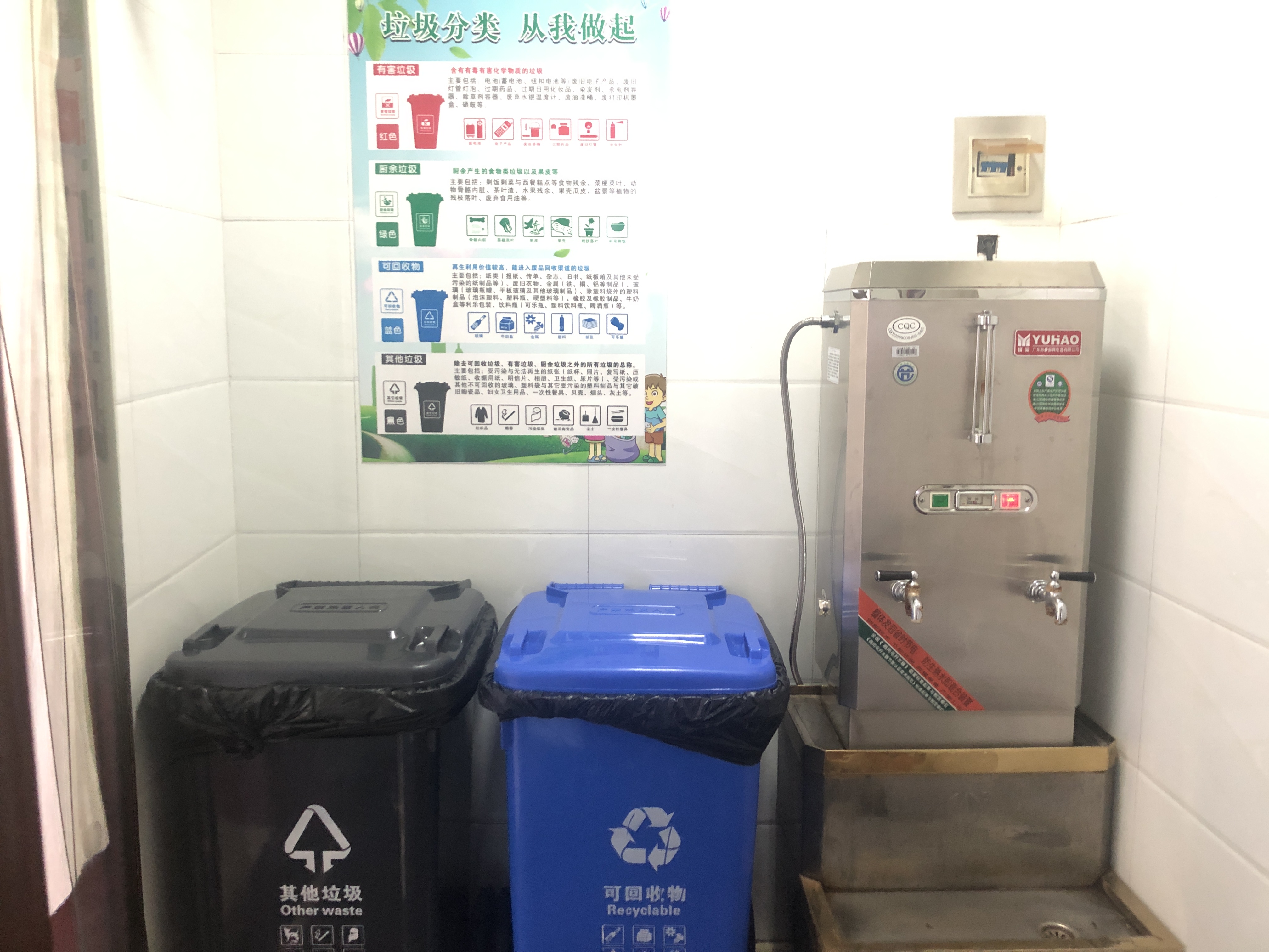 為進(jìn)一步提高全體員工對垃圾分類的正確認(rèn)識,倡導(dǎo)員工逐步養(yǎng)成垃圾分類投放的良好行為習(xí)慣,在工作生活中自覺做到“垃圾分類,從我做起”,從八月開始,綜合辦公室多措并舉,落實(shí)垃圾分類相關(guān)工作。組織部門人員進(jìn)行系統(tǒng)、全面的垃圾分類知識培訓(xùn);在食堂門口、辦公區(qū)、樓道等公共場所粘貼垃圾分類宣傳海報;在用餐區(qū)域懸掛垃圾分類橫幅標(biāo)語;各樓層設(shè)置不同的分類垃圾桶及分類標(biāo)識;樓層公共區(qū)域由保潔人員負(fù)責(zé),定時巡查垃圾投放情況,負(fù)責(zé)垃圾分類的日常管理監(jiān)督等。