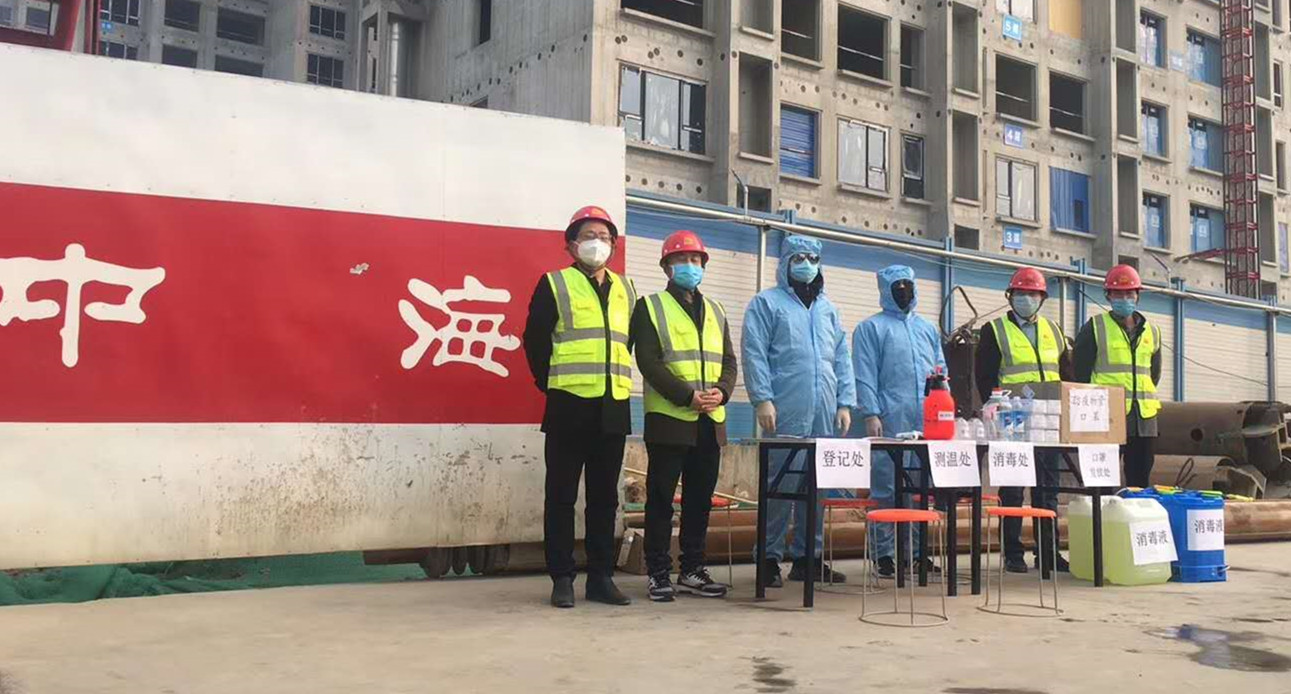 中海項目是公司調(diào)整戰(zhàn)略布局,全面展開自營項目建設,成立工程二部后承接的首個項目,是公司2020年重點項目,意義非凡。新年伊始,卻突遇疫情,為保證工程進度,公司上下高度重視,工程二部經(jīng)理呂紅輝統(tǒng)籌安排,靠前指揮,多次召開線上會議,研究項目部防控防疫及復工復產(chǎn)工作;薛桂軍經(jīng)理帶領管理人員根據(jù)質(zhì)監(jiān)站、甲方要求,制訂項目開工前的防疫措施,積極辦理復工前的各種手續(xù),為項目部的全面復工復產(chǎn)做足準備。