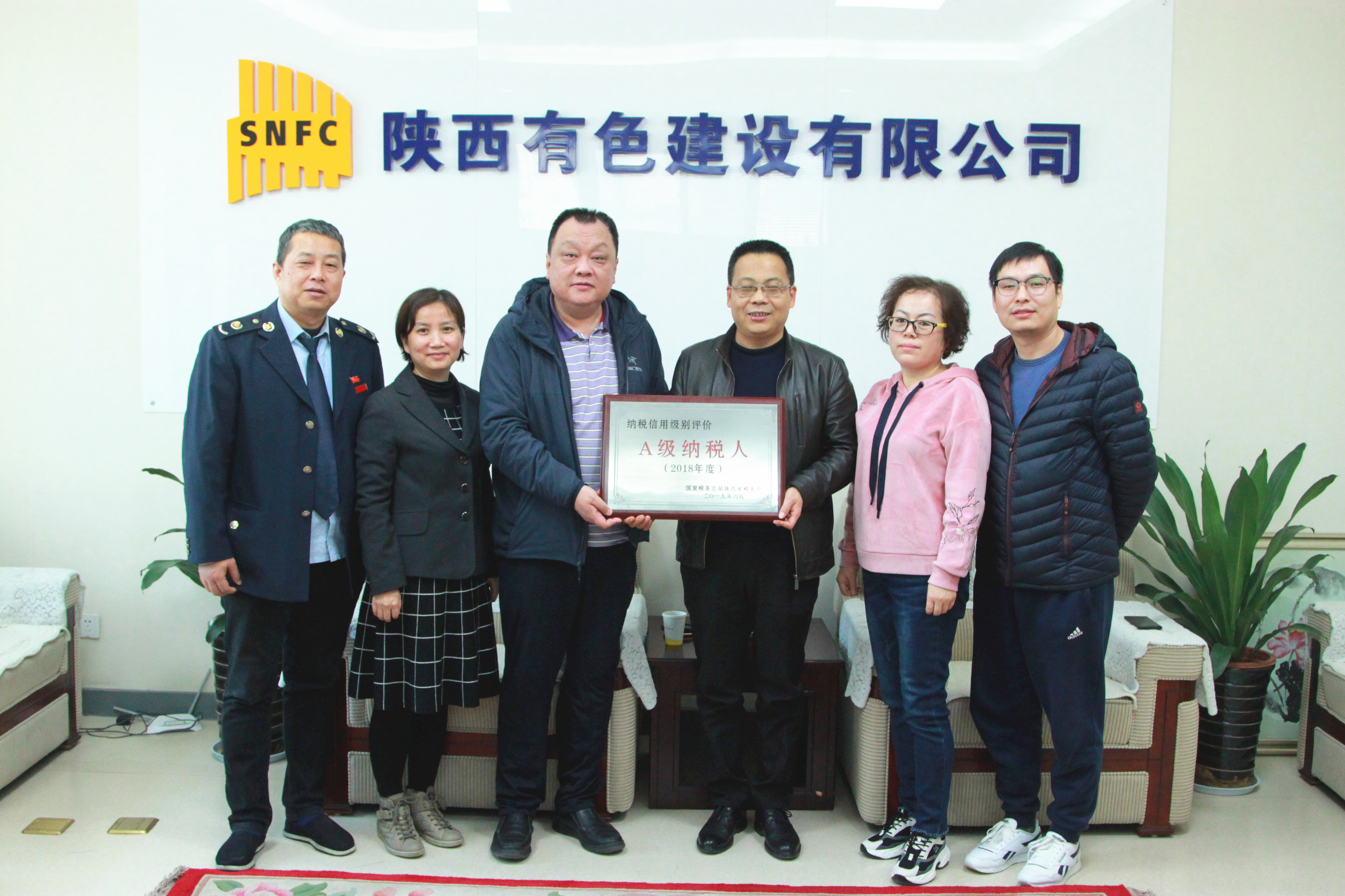 12月5日,碑林區(qū)稅務局第六稅務所高曉成所長前往公司頒發(fā)“2018年度A級納稅人”的獎牌,總會計師陳毓代表公司領(lǐng)獎。至此公司已連續(xù)兩年獲此殊榮。