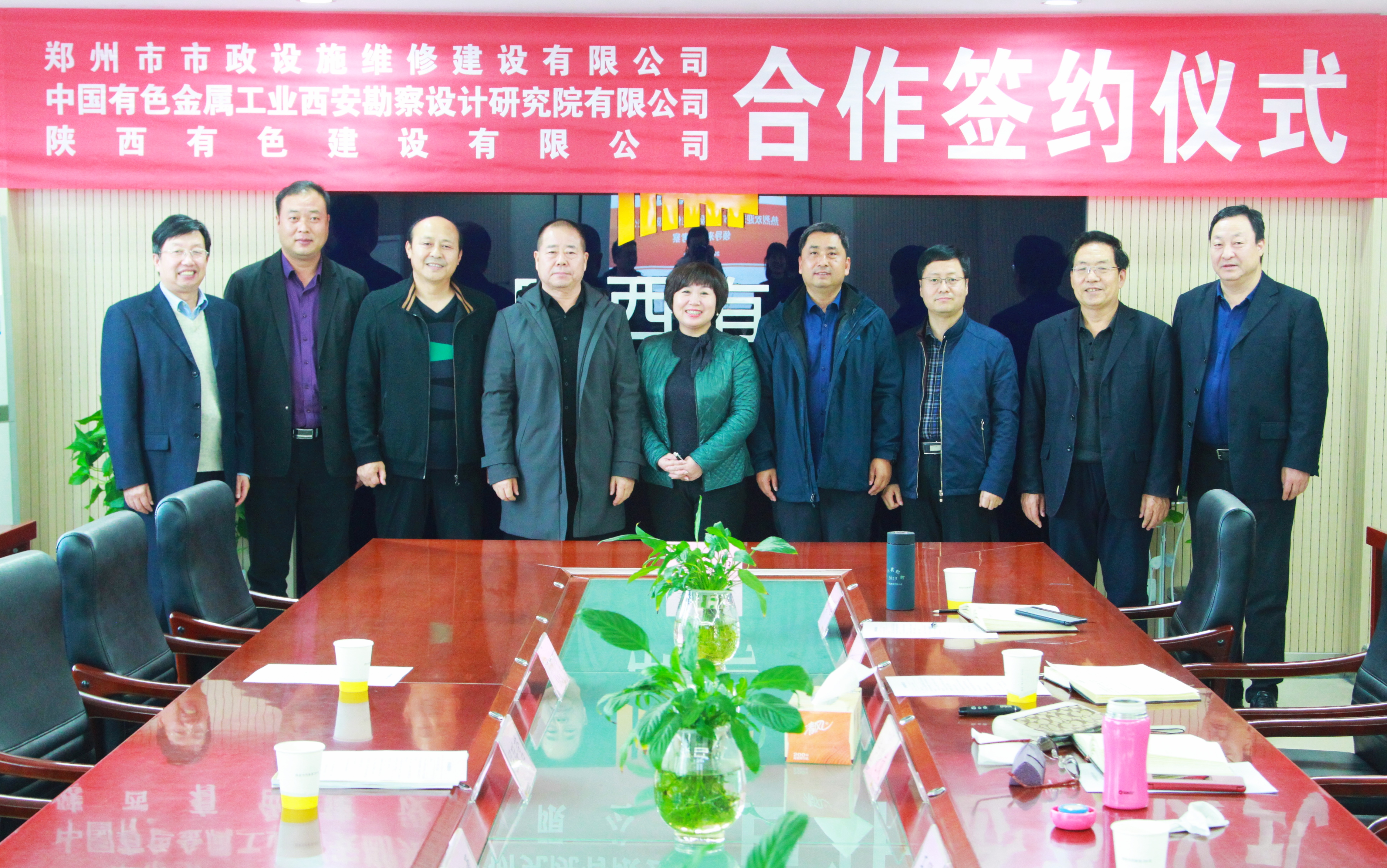 11月21日,我公司、有色西勘院有限公司與鄭州市市政設(shè)施維修建設(shè)有限公司(以下簡(jiǎn)稱“鄭州市政公司”)在西安簽署合作協(xié)議。有色西勘院有限公司副總經(jīng)理王軍成、有色陜建黨委書(shū)記、董事長(zhǎng)盧曉嵐和鄭州市政公司董事長(zhǎng)兼總經(jīng)理?xiàng)钪怯?/span>分別代表三方在合作協(xié)議上簽字。鄭州城基市政環(huán)??萍加邢薰究偨?jīng)理李志強(qiáng)、有色西勘院有限公司經(jīng)營(yíng)部部長(zhǎng)何軍、公司總工程師杜輝及相關(guān)職能部門負(fù)責(zé)人參加了此次合作協(xié)議簽約儀式。