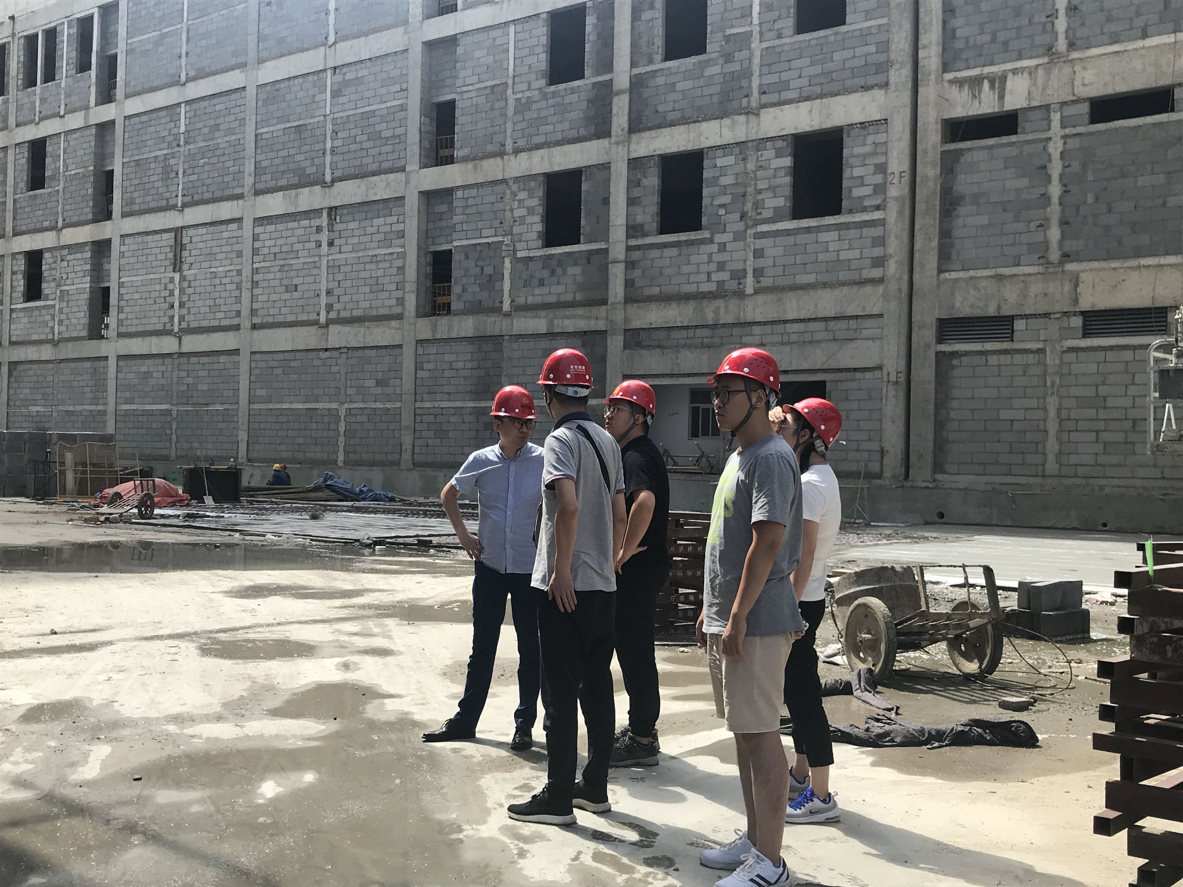 在工地現(xiàn)場(chǎng),項(xiàng)目經(jīng)理呂紅輝介紹了項(xiàng)目目前的施工進(jìn)度情況。現(xiàn)主體工程已經(jīng)完工,正在進(jìn)行防水、保溫等工作,施工現(xiàn)場(chǎng)井然有序,在建主樓觀感良好。大家跟隨呂經(jīng)理了解到了車庫頂板防水所用材料及其施工工藝,在標(biāo)準(zhǔn)層中進(jìn)行了實(shí)地參觀學(xué)習(xí)。