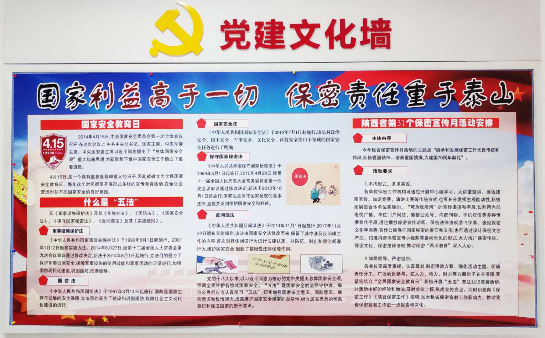 保密宣傳月活動開展以來,公司積極組織廣大干部職工嚴(yán)格按照集團(tuán)公司和有色西勘院有限公司有關(guān)文件精神,以“繼承和發(fā)揚保密工作優(yōu)良傳統(tǒng)和作風(fēng),弘揚愛國精神、培養(yǎng)愛國情操,為建國70周年獻(xiàn)禮”為主題,以重點學(xué)習(xí)《保密法》《保密法實施條例》為載體,將保密知識學(xué)習(xí)和觀看教育視頻《“中國核潛艇之父”黃旭華的30年“深潛”人生》納入各支部“三會一課”重要內(nèi)容進(jìn)行學(xué)習(xí)。在充分發(fā)揮保密宣傳教育主陣地作用的同時,還注重利用QQ群、微信公眾號、電子屏等媒體平臺,進(jìn)一步普及保密法律法規(guī)知識,提高廣大干部職工的保密意識和工作水平。一是在公司各類QQ群、微信群轉(zhuǎn)發(fā)保密宣傳提醒消息,并要求所有干部職工關(guān)注“保密觀”微信公眾號,做好保密知識的宣傳學(xué)習(xí);二是利用公司微信公眾號不定期發(fā)布保密常識、法律法規(guī)和文件精神;三是通過黨建文化墻和電子屏播放保密標(biāo)語口號、懸掛保密宣傳橫幅等多種形式,把保密宣傳工作落到實處。通過形式多樣的保密宣傳,使廣大干部職工的保密意識和責(zé)任感明顯增強,形成了“人人保密、時時保密、處處保密”的良好氛圍。