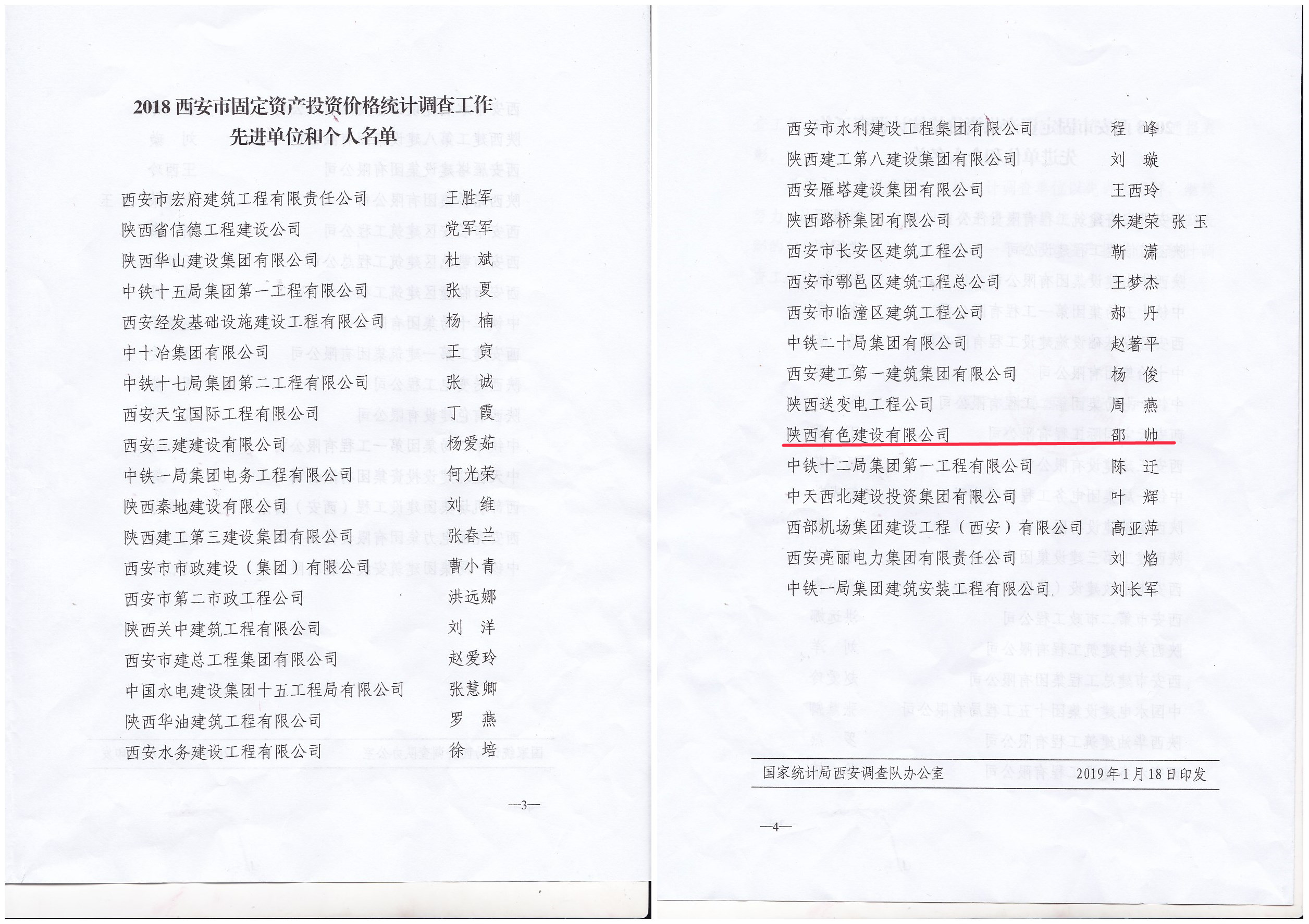 近期,在國家統(tǒng)計局西安調(diào)查隊召開的2018年度工作總結(jié)暨表彰大會上,公司喜獲統(tǒng)計調(diào)查先進單位;成本中心邵帥榮獲統(tǒng)計調(diào)查工作先進個人稱號。