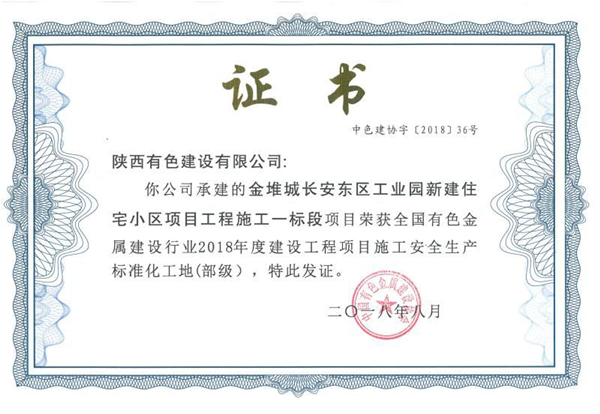 近日,從中國有色金屬建設(shè)協(xié)會(huì)傳來喜訊,公司金堆城長(zhǎng)安東區(qū)項(xiàng)目榮獲“全國有色金屬建設(shè)行業(yè)2018年度建設(shè)工程項(xiàng)目施工安全生產(chǎn)標(biāo)準(zhǔn)化工地”稱號(hào),這是公司獲得的首個(gè)中國有色金屬行業(yè)部級(jí)安全生產(chǎn)標(biāo)準(zhǔn)化工地,也是該項(xiàng)目繼獲得西安市航天基地2017年度“安全生產(chǎn)工作先進(jìn)單位”后又一項(xiàng)安全管理工作殊榮。