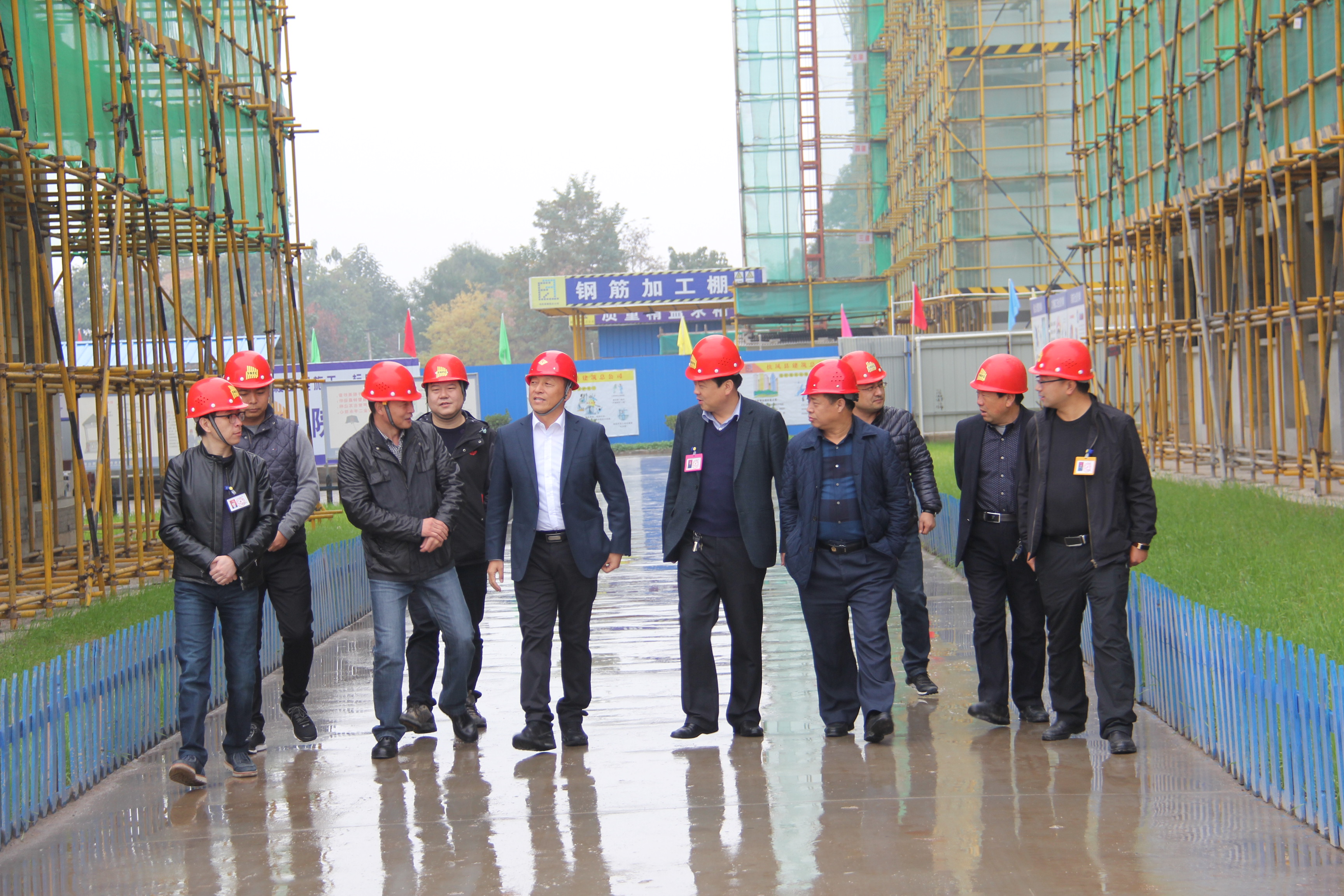 楊總一行先后前往了第二工程公司扶風(fēng)社會福利中心項目及扶風(fēng)高中綜合教學(xué)樓項目、第十七工程公司扶風(fēng)縣法門鎮(zhèn)移民搬遷工程項目、第五分公司扶風(fēng)體育運動中心項目。在調(diào)研過程中,各生產(chǎn)單位負責(zé)人首先就項目建設(shè)方面情況向楊總作了匯報,并陪同調(diào)研組成員對施工現(xiàn)場的工程質(zhì)量和安全進行了深入檢查。楊總每到一處,都認真對現(xiàn)場各環(huán)節(jié)進行檢查詢問,發(fā)現(xiàn)有問題的地方,立即要求組織整改,并安排后續(xù)復(fù)查工作。他表示,施工質(zhì)量代表著企業(yè)實力,施工安全關(guān)乎每一位員工、每一個家庭的幸福。希望大家要從思想上、行動上提高安全防范意識,加快建設(shè)進度,確保按期完成目標(biāo)任務(wù)。