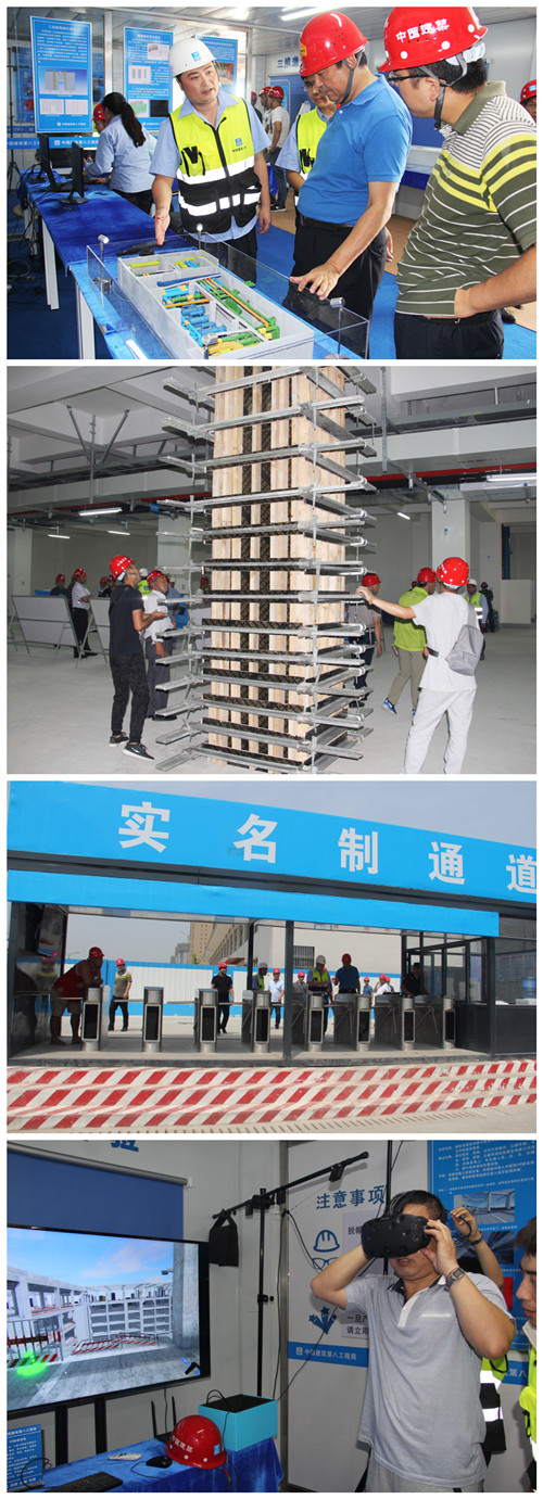 觀摩人員先后參觀了辦公生活區(qū)、安全體驗(yàn)區(qū)、“互聯(lián)網(wǎng)+”體驗(yàn)中心、BIM+VR+3D打印大數(shù)據(jù)中心和生產(chǎn)區(qū)。其中:云筑網(wǎng)建筑工人實(shí)名制管理平臺、“互聯(lián)網(wǎng)+質(zhì)量/安全/物資”展示、BIM深化設(shè)計(jì)、VR安全教育體驗(yàn)、3D打印建筑模型、AR圖紙識別技術(shù)、方圓扣自鎖模板、鋼筋綁扎定位、定型化工具式通道等施工亮點(diǎn)引人關(guān)注。