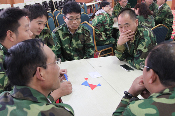 本次拓展訓練有幾個鮮明的特點。首先,參加拓展訓練的成員均為公司中層以上領(lǐng)導(dǎo)崗位人員,他們溝通協(xié)調(diào)能力強,團隊相對穩(wěn)定,經(jīng)過多年的工作配合,默契程度較高;其次,在結(jié)構(gòu)層次上主要是以公司和生產(chǎn)單位的負責人為主,參與人員遍布公司各個核心管理崗位,他們位居要職,長期緊張工作,屬于思維可能陷入某種慣性模式的管理者。再次,參加培訓人員的生活經(jīng)驗相對豐富,社會閱歷較多,且大部分領(lǐng)導(dǎo)人在平日的工作中屬于決策型的角色,目光敏銳,反應(yīng)也迅速、準確。