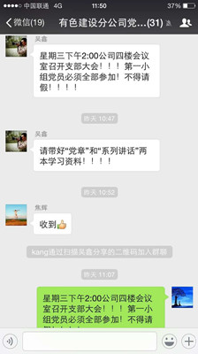 該群開通以來,黨員在群中發(fā)言踴躍,學(xué)習(xí)氛圍濃厚。“兩學(xué)一做”研討會、知識競賽、講黨課、檢查督導(dǎo)等視頻、圖片、文字等黨建工作動態(tài),在黨員指尖傳遞。