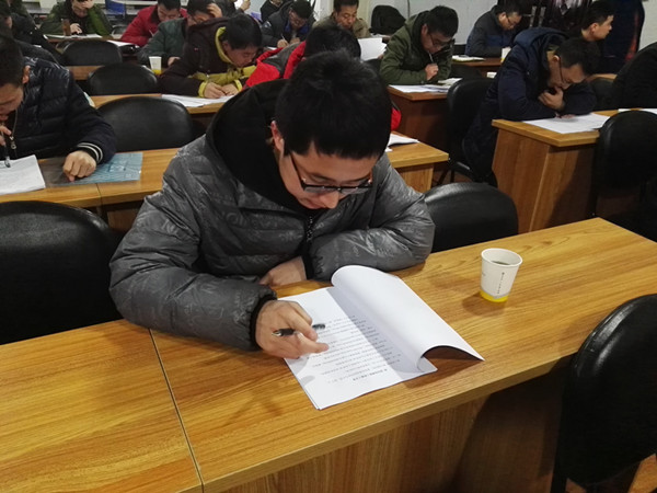 上午九點(diǎn)競(jìng)賽正式開(kāi)始。參賽人員拿到題后,細(xì)心瀏覽并作答,現(xiàn)場(chǎng)答題氛圍安靜嚴(yán)肅。據(jù)悉,此次競(jìng)賽題目分為兩類(lèi),分別是土建和安裝專(zhuān)業(yè),由施工方案競(jìng)賽評(píng)選領(lǐng)導(dǎo)小組出題。通過(guò)對(duì)現(xiàn)場(chǎng)答題職工的采訪(fǎng),他們認(rèn)為此次競(jìng)賽的題量適中,題目有深度,雖然按照書(shū)本知識(shí)能夠答完,但是要結(jié)合安全文明施工、綠色施工、優(yōu)質(zhì)結(jié)構(gòu)和新技術(shù)示范創(chuàng)建等要求,答題標(biāo)準(zhǔn)就必須提升檔次,不再局限于答完,更要求答好、答精。公司也據(jù)此為參賽人員留夠充足的答題時(shí)間,讓他們認(rèn)真思考,耐心作答。