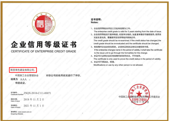 近日,中國施工企業(yè)管理協(xié)會印發(fā)了《關(guān)于公布2018年度工程建設(shè)企業(yè)社會信用評價結(jié)果的通知》(中施企協(xié)字〔2018〕57號),陜西有色建設(shè)有限公司被評為“2018年度工程建設(shè)企業(yè)社會信用評價AAA級信用企業(yè)”。這是繼公司連續(xù)榮獲省建協(xié)“AAA”信用評級后,獲得的又一殊榮。