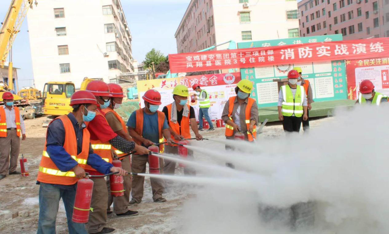 消防安全常抓不懈,安全演練警鐘長鳴 ——第二工程公司鳳翔縣醫(yī)院項(xiàng)目部成功舉行消防模擬演練活動