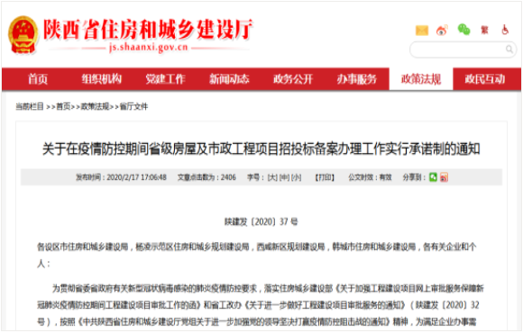 2月17日,省住建廳印發(fā)通知,明確自即日起至疫情結(jié)束前,我省省級(jí)房屋及市政工程項(xiàng)目招投標(biāo)備案工作所有材料實(shí)行承諾制。企業(yè)在辦理招投標(biāo)備案時(shí),由建設(shè)單位依法對(duì)備案材料的真實(shí)性和完整性進(jìn)行承諾。