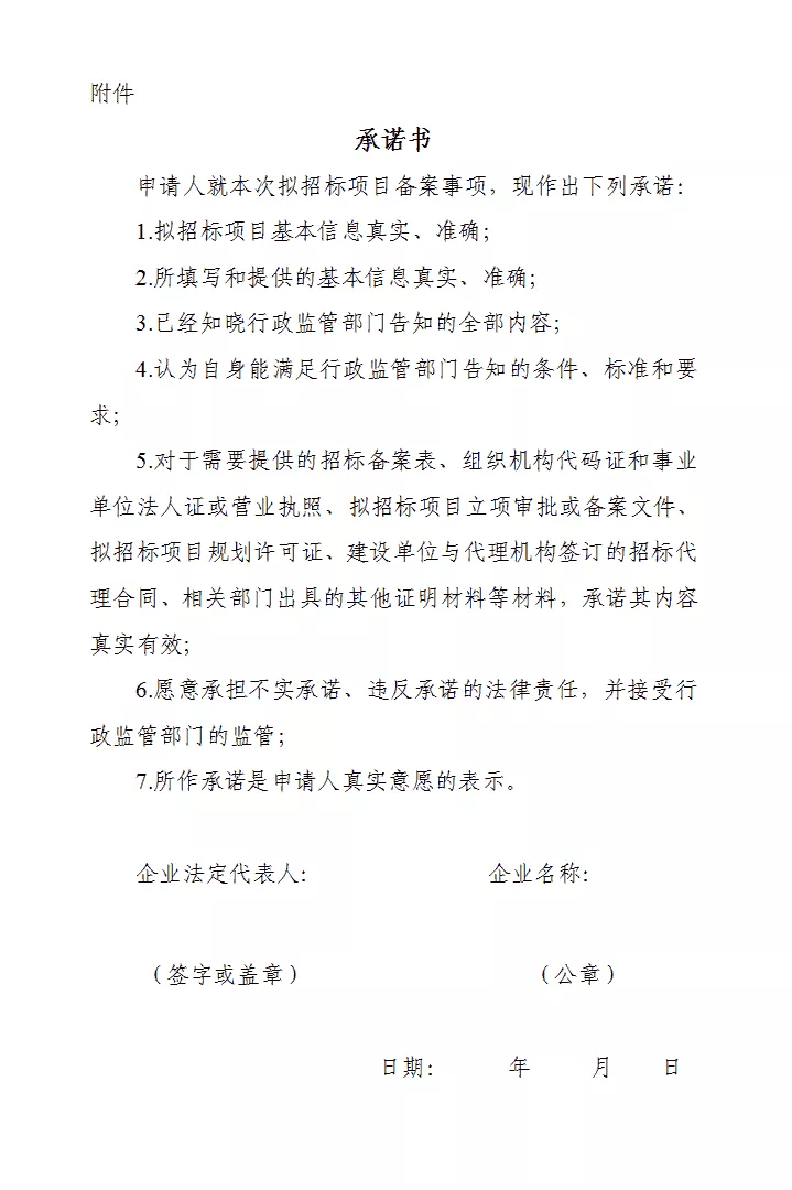 ● 應(yīng)當(dāng)按照告知承諾書(shū)的約定,向招投標(biāo)監(jiān)管部門(mén)提交相關(guān)材料。作出承諾的申請(qǐng)人,須由法定代表人簽字,并加蓋單位公章。在“其他相關(guān)附件”中上傳簽字印鑒齊全的書(shū)面承諾書(shū)。